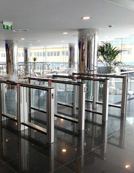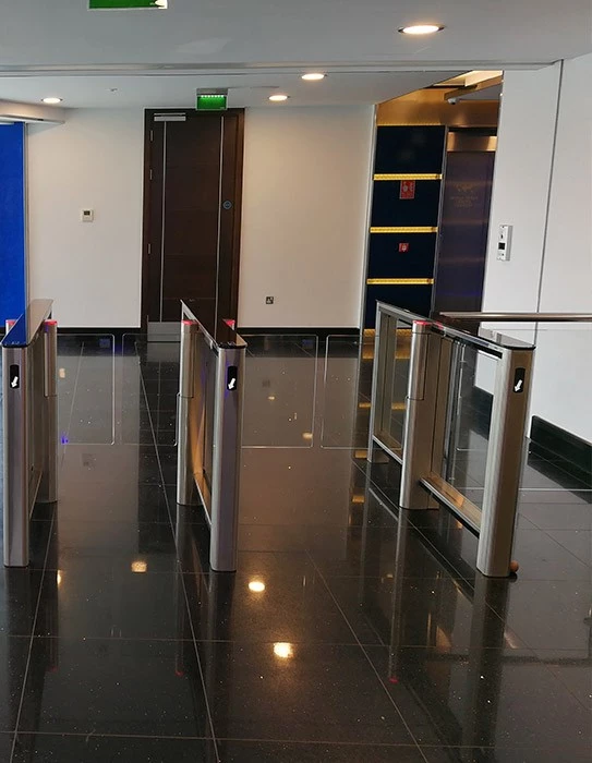 El Pasillo automático de hojas batientes ST-01 es un pasillo motorizado bidireccional, construido en acero inoxidable y vidrio templado para las tapas superiores y hojas batientes, que lo dotan de una gran robustez y elegancia. Este equipo permite el control de acceso de personas una a una, gracias a sus 14 sensores ubicados en el nivel superior y 28 sensores en el nivel inferior, capaces de evitar el uso fraudulento de paso simultáneo o en sentido contrario. Además, dispone de alarmas sonoras que avisan del mal uso antes del cierre de las hojas.
