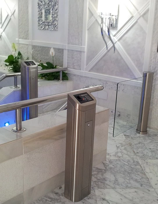 El portillo motorizado PM600 es un portillo con hoja de cristal motorizado bidireccional. Estructura en forma de tubo con acabado en acero inoxidable AISI314 o 316 y panel batiente de cristal security transparente de 10 mm, con apertura a 90º dejando el pasillo totalmente libre sin obstáculos para el paso. Su funcionamiento es sencillo, mediante pulsador manual o relé de la electrónica de control, realizamos la apertura motorizada de la puerta en el sentido predefinido. El cierre se realizará bien de forma temporizada o bien mediante pulso. Entre los principales usos, personas con movilidad reducida, acceso de visitas, entrada de carga. Conjunto electromecánico comprendiendo: Motor, reductor planetario engrasado de por vida.