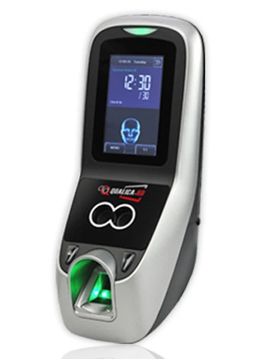 El terminal biométrico que combina tecnología facial y huella QRD1000i700 es la joya de la corona de la marca, con una capacidad de almacenamiento de 1.500 rostros, 2.000 huellas y 10.000 tarjetas (lector de proximidad opcional). Se trata de un terminal muy fiable, con una posibilidad de error menor al 0.0001%. Completamente en Español, incluye la posibilidad de activar incluso mensajes auditivos de paso. Con su cámara infrarroja de alta resolución, es capaz de realizar lecturas a alta velocidad y en diferentes condiciones lumínicas.